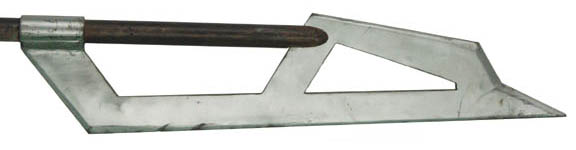 Description: While in the ‘Alpha Quadrant' there may be no more fearsome warrior than the “Klingons”, in the ‘Gamma Quadrant’ that title belongs to the tireless, reptilian “Jem’Hadar”. The shock troops of the tyrannical ‘Dominion’ the “Jem’Hadar” are the genetically engineered perfect warriors; they never sleep, eat, sit or lie down, they are completely devoted to their godhead leaders, the “Founders” and they live on average only a handful of years before they die in honorable combat. One of their favored weapons is this: the dreaded “Kar’Takin”! A ‘bladed’ weapon, this prop was featured prominently in the episode “To the Death” of Star Trek: Deep Space Nine. The item is made of wood, metal, and molded rubber components, painted metallic silver and aged to appear tempered by battle! It measures approx. 40 X 7 X 2 inches.