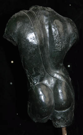 Description: Used in the workshop of the master Leonardo Da Vinci, this amazing prop from the set of "Star Trek: Voyager" would look amazing in your study, library or living rom. When Captain Janeway uses a holoprogram to visit the master himself, played by John Rhys-Davies, they had many an interesting converstation . Da Vinci appeared in several episodes like “Scientific Method” and “Concerning Flight”. This item came from a set devoted to the character, his workshop. Measuring approximately 18" high, it is made of solid carved wood, painted black. The torso may be removed from the cube base (the base has small chips in 3 corners).