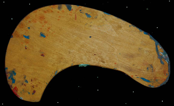 Description: A true artist, Da Vinci's palate from the series of episodes including "Scientific Method" and "Concerning Flight", this palate measuring approximately 15.5" shows years of use from the layers of paint. Shades of green and blue, you will want to feature this amazing prop with your other art collectables. Portrayed by John Rhys-Davies, “Leonardo Da Vinci” worked alongside “Janeway” asking life's questions and attempting to solve them.