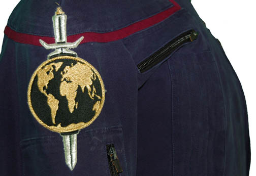 Description: The “evil Mirror Universe” of Star Trek is a place where our heroes are duplicated though their personalities are vastly different due to their changed circumstances. The Federation has been replaced by a Terran Empire that rules by force and conquest instead of governing by diplomacy and democracy. Changes in the chain of command frequently come through assassination, mutiny, and seduction. Costumes like this one were featured in the two episode story arc “In a Mirror, Darkly, Parts I and II” of Star Trek: Enterprise. This item consists of a Terran Empire Starfleet uniform jumpsuit including the notorious ‘Avenger NX-09' left shoulder patch with red and yellow beams of light emitting from a white Starfleet emblem, a patch emblem of the Terran Empire on the opposing right shoulder, red engineering division trim around the shoulders, and black epaulettes for rank. The “Avenger” was another ‘NX-Class’ ship like “Enterprise” commanded by a human captain (as is commonplace in the mirror universe) though crewed by aliens considered to be second-class citizens. In the episodes the aliens attempted to improve their situation by taking over the “Enterprise” after “Avenger” was destroyed in combat. “Star Trek: Enterprise” costumes feature multiple zippered pockets, Velcro size adjustments at the wrist and ankles, and come complete with a black undershirt (this one a sleeveless tee) with detachable shoulder pads, even in the mirror universe. The sewn in tag reads “Enterprise” and indicates use by various actors in the series.