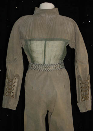 Description: “Commander T'Pol (Jolene Blalock) had been in a lot of difficult situations before the ‘Terra Prime’ incident, but when a group of terrorists created a hybrid clone of “’Trip’ Tucker” (Connor Trinneer) and “T’Pol” she had to go undercover to see how it was possible. Their mission took them to the ‘Orpheus Mining Complex’ on the moon where miners wear durable coveralls to protect them in the harsh elements. This impressive jumpsuit is made of durable tan material with a matching mesh section in across the lower back and has intentional distressing for continuity. It has Velcro and lace up size adjustments at the cuffs and ankles, zips up the front, and features the ‘Orpheus Mining Colony’ patch on the right breast. Jolene Blalock wore this while portraying “T’Pol” in the episode “Demons” and “Terra Prime” of Star Trek: Enterprise. The costume also comes with a matching canvas belt with multiple holes and boots worn in the both the aforementioned episodes and “Marauders” from the second season of the show.