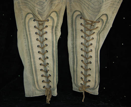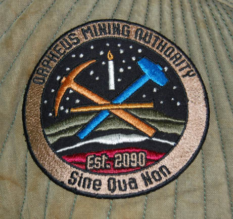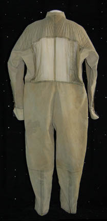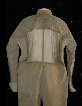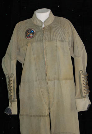 Description: This impressive jumpsuit is made of durable tan material with a matching mesh section in across the lower back and is ‘distressed' in that it is ‘stained’ to appear used. It has Velcro and lace up size adjustments at the cuffs and ankles, zips up the front, and features the ‘Orpheus Mining Colony’ patch on the right breast. Costumes like this were featured in the episode ‘Terra Prime” of Star Trek: Enterprise.