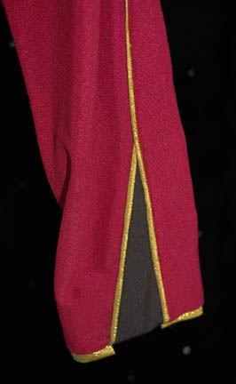 Description: Guest starring in the episodes “Too Short a Season”, Clayton Rohner portrayed “Admiral Mark Jamison”. Tricked into returning to a hostile world, he took an age reversal drug with which his body could not cope. His uniform as he progressed from elderly to youthful was that of a Starfleet command officer at the rank of rear admiral. In the style of Star Trek: The Next Generation he wore a red jacket with black shoulders and a black swath across the front, featuring gold trim around the cuffs and collar, Velcro settings for away team gear and a combadge (sold separately), and a zip running diagonally across the front with snaps and clasps. This uniform even features the original rank pin attached to the right collar with a series of ‘gold' diamonds surrounded by a swath of ‘gold’ bracing. The interior tag is inscribed ‘Clayton Rohner’.