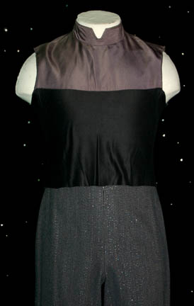 Description: A two piece suit made of gray fabric with inset sparkles, a low front with wide collar that snaps closed, all worn by the negotiator who tried to steal “Deanna Troi's” (Mirina Sirtis) heart in the episode “The Price” of Star Trek: The Next Generation, “Devinoni Ral” (Matt McCoy). The costume also appears to have been worn in various episodes of Star Trek: Deep Space Nine by ‘Ken Gruz’ and features a costumer’s tag inscribed ‘Matt McCoy, The Price’.