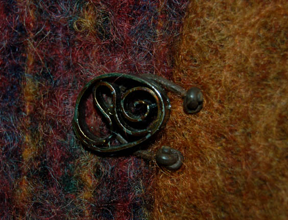 Description: A beautiful wool coat featured in the Star Trek: The Next Generation episode “Thine Own Self”. With leather clasps for a series of metal buttons in the front, this mid length coat has the appearance of rolled up sleeves and was worn by the ‘Barkonian Apprentice' who was injured by a fallen anvil until “Data” (Brent Spiner) unknowingly used his android strength to remove the anvil from his leg. Sewn in tags indicate use on The Next Generation and in Star Trek: Voyager, and the costumer’s tag is inscribed ‘Apprentice, Any Kossin’.
