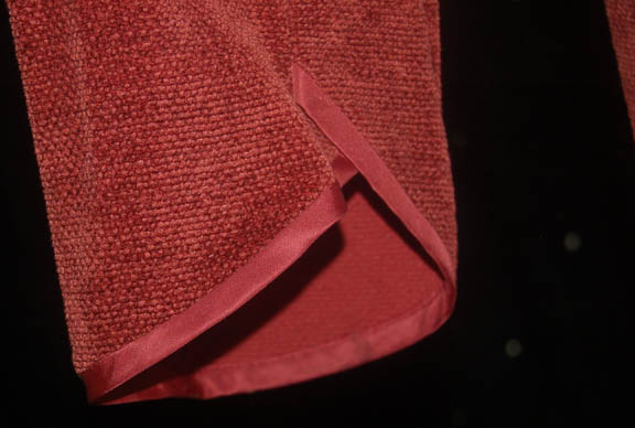 Description: A soft red robe with a double breasted appearance featured in the Star Trek: Voyager episode “Riddles” for wear by “Tuvok” (Tim Russ) who lost his ability to retain his ‘Vulcan' emotional control and was subsequently relieved of duty until a cure could be found. The interior Voyager tag reads ‘Tim Russ’ as does the costumer’s tag, the left breast features a sewn on patch for a Starfleet combadge (sold separately).
