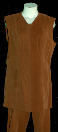 Description: Captured by a massive industrial consortium and brainwashed into believing that they have been part of the employees of this company forever, the crew of “Voyager” wore jumpsuits like this one in the episodes “Workforce, Parts I and II” of Star Trek: Voyager. The costume was worn by an “Alien Surgeon” and includes a brown sleeveless top, brown pants and a matching brown lab coat worn over the top. Costume comes complete with costume tag.
