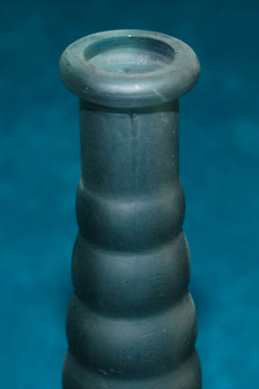 Description: “Riann” (Diane DiLascio) was an “Akaali”; a pre-industrial people who lived on a Class M planet similar to Earth. The Akaali and Riann were encountered by “Captain Archer” (Scott Bakula) in the Star Trek: Enterprise episode “Civilization”. Riann was a trained apothecary involved in trying to identify the strange illness that killed her brother. These bottles were used as set dressing in her quarters where she was visited by Captain Archer. One bottle is blue with circular ridges and the other is opaque yellow. Both are made of glass. The blue measures approx. 15 x 4 inches diameter and the yellow measures approx. 10 x 3 ½ inches diameter.