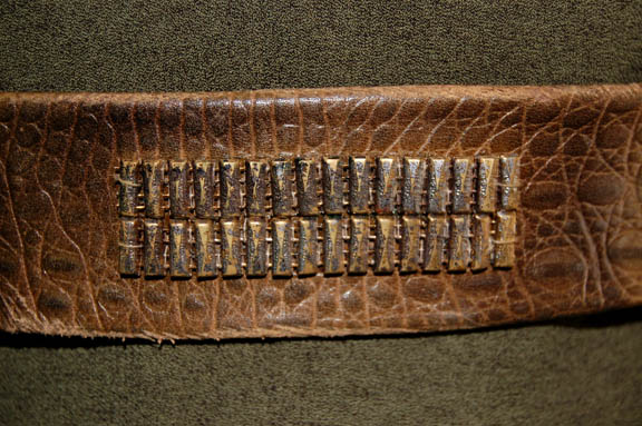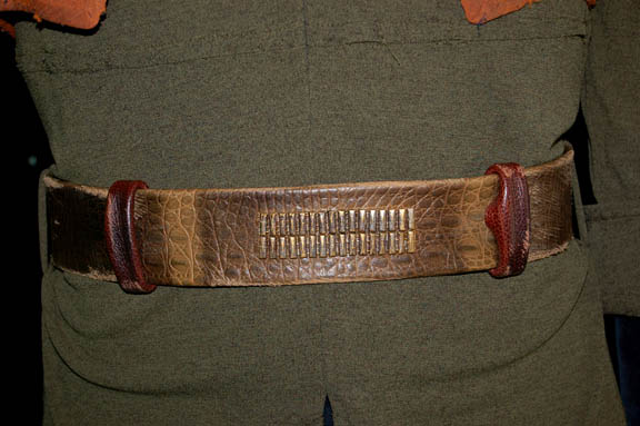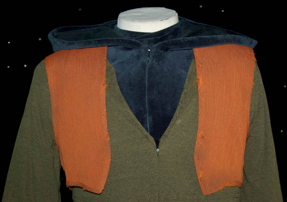Description: A costume made for actors portraying ‘Suliban' prisoners in a Tandaran detention camp in the Star Trek: Enterprise episode “Detained”. The costume is comprised of a blue hooded velour jumpsuit with a green top, and an orange vest. The costume comes with a leather belt with metal details and a costumer’s tag reading ‘Billy Hamilton’.