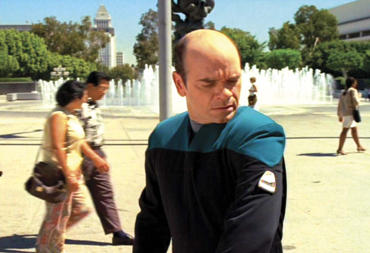 Description: (Paramount, 1994-2001) Constructed of grey-painted resin and measures approx. 2 in. long, this device is a 29th century self-powered mobile emitter worn on the armband of Voyager's holographic "Doctor" (Robert Picardo) that allows the Doctor to leave the previously confined area of sickbay.
