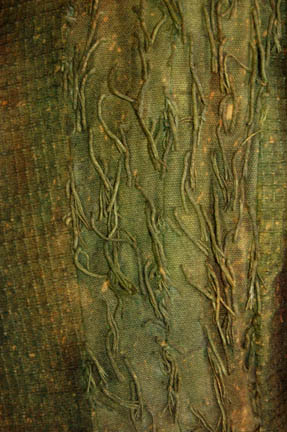 Description: A costume worn by aliens who appeared in the “Voyager” crew's dreams during the episode “Waking Moments” of Star Trek: Voyager. Made of dark green fabric with accented fabric featuring green shag, the costume also features sewn on metal domes made to appear nailed in. The costumer’s tag indicates wear by ‘Stewart Coleman’.