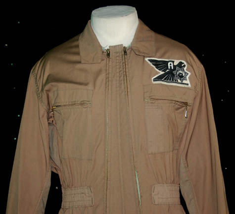 Description: A costume featured in the Star Trek: Deep Space Nine episode “Past Tense, Parts I and II” for wear by a Sanctuary District Guard. The costume is a full length jumpsuit with a form fitting elastic waist and a zip up the front. The costume features a Sanctuary District patch sewn onto the left breast, multiple zippered pockets and a costumer's tag reading ‘DS9 457-458 Guard’.
