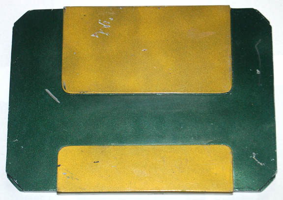 Description: A large PADD (Personal Access Display Device) featured in the Star Trek: Voyager episodes “Year of Hell, Parts I and II” in which “Voyager” is becomes trapped within a large alien empire when an alien timeship alters the course of history in the Delta Quadrant. The ship is crippled multiple times while attempting to defeat the timeship and retrieve their captured crewmen. On board the ship, “Chakotay” (Robert Beltran) begins to learn the intricate science of alternate time lines from “Captain Annorax” (Kurtwood Smith) with the help of this impressive hand prop. The items is a rich green painted cast resin PADD with two inset ‘display screens' featuring graphical applications denoting lines of time spiraling out of synch with remembered history. The time features several inset accents and details painted metallic silver and copper, and other raised details painted metallic gold. The item measures approx. 14 X 10.25 X 1 inches.
