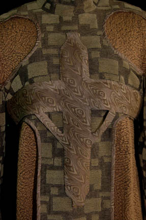 Description: “Dr. Jo'Bril” (James Horan) was a Takaran scientist invited onboard the U.S.S Enterprise to view a test of its metaphasic shielding in the Star Trek: The Next Generation episode “Suspicions”. Jo’Bril wasn’t all he appeared to be and was killed in self-defense by Dr. Beverly Crusher (Gates McFadden). The first shot blasted a hole through his abdomen but it failed to kill him, the second shot was set to vaporize and he was annihilated. The tunic is made of heavy weight fabric that features rectangular shapes and a zip up the back. It has snaps on the front and back for a cut out costume piece to attach. Costume comes complete with costume tag.