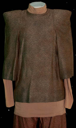 Description: A three piece costume featured in the legendary Star Trek: The Next Generation episode “Unification, Part I” for wear by Brent Spiner as “Data” while portraying a ‘Romulan' civilian. Having discovered “Spock” (Leonard Nimoy) on the Romulan home world, they send “Captain Picard” (Patrick Stewart) on a fact finding mission to determine if their renowned ambassador is a defector. While searching the cities with Data they don the clothes of Romulan civilians, a pair of cropped trousers and a long sleeved undershirt with a large outer robe, squared off at the shoulders. The garments feature sewn in tags reading ‘Brent’, the costumer’s tag reads ‘TNG #208 Unification, DATA, Brent Spiner, as Romulan’ and indicates the components.