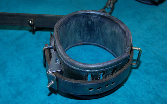 Description: Two pair of metallic purple painted leather manacles both with an assortment of straps and buckles with Velcro adjustments. The larger set features a chain and a metal bar separation, the smaller set features a bar separation. Believed to have been used on “Captain Archer” (Scott Bakula) during the episode “Azati Prime” of Star Trek: Enterprise. Measures approx. 14 X 7 inches.
