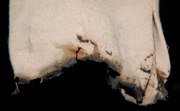 Description: Costume worn in Star Trek I: The Motion Picture by "Lieutenant Pavel Chekov" (Walter Koenig) in the scene where his hands are severely burned when the "USS Enterpriseā was probed by "V'ger". The costume is a tan short-sleeved Class-B uniform shirt featuring unattached bio-monitor, and right cuff distressed to appear burned. A sewn in Western Costume Co. tag reads 'Walter Koenig' and the left breast show evidence of a removed patch where threads are visible.