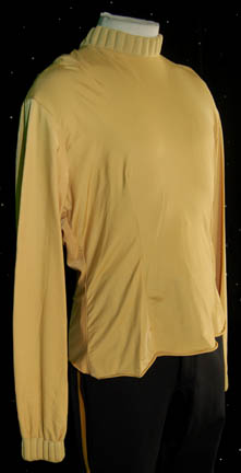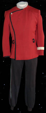 Description: From the beginning of Star Trek: The Next Generation, actor Tim Russ has been associated to the franchise. Having auditioned for a role as “Geordi La Forge” which subsequently was given to Levar Burton, Russ eventually became cast as the Vulcan security officer “Tuvok” on Star Trek: Voyager after having played various guest roles in The Next Generation and Deep Space Nine. As Tuvok was trapped in the Delta Quadrant it was eventually known that he had been an ensign on board the famous “USS Excelsior” during the events of Star Trek VI: The Undiscovered Country. Shortly thereafter, at least in the Star Trek chronology, Russ performed as a member of the “USS Enterprise-B” crew during the opening of Star Trek VII: Generations. In both instances Tim Russ wore a costume with components to create this lot, a feature films-style Starfleet uniform. The lot consists of a pair of two pairs of black trousers, one with gold division stripes down the outside seam of the legs and the other with grey division stripes; the grey trousers featuring sewn in Star Trek VII tags inscribed ‘Tim Russ'. The lot comes with two shirts, one a gold colored long sleeved shirt with a ribbed collar and cuffs and a sewn in Star Trek VII tag reading ‘Tim Russ’, and a gray colored sleeveless shirt with no identifying tag. The lot includes a gray shoulder division strip with gold colored trim and an affixed metal ‘ensign’ rank badge with an affixed ‘security placement’ on the other end, and a red rank placement with affixed metal ‘ensign’ rank badge for attachment to a uniform sleeve, both of which were located with a tag inscribed ‘Tim Russ’. Finally, the costume comes complete with a maroon colored Starfleet class-A uniform jacket with white colored inner breast lining, silver colored metal chain details in between snaps, and an affixed command white division strip on the left sleeve which has no identifying tags.