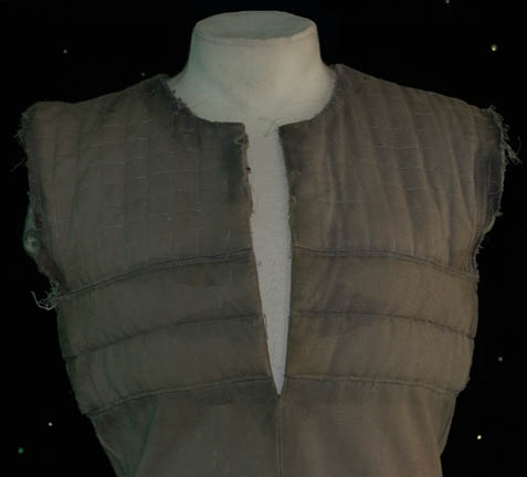 Description: A costume featured in the Star Trek: The Next Generation episode “The Hunted' for wear by an ‘Angosian’ prisoner. The costume is a full length, sleeveless, gray jumpsuit with padded knees, pockets, and a line of padding around the chest. The costume zips halfway up the front and features a costumer’s tag reading ‘159, The Hunted, Prisoner’. Also, present is a sewn in Voyager tag indicating use in that series.