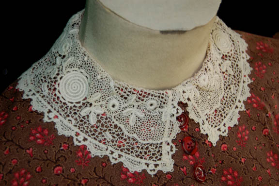 Description: A costume featured in the Star Trek: Voyager episode "Spirit Folk" for wear by Kate Mulgrew in the role of "Captain Kathryn Janeway/Katie O'Claire" in which the holographic inhabitants of "Fair Haven" begin to suspect the "Voyager" crew of being demons or spirits. The costume is a white corset, camisole, and petticoat with a brown and red calico bodice and skirt over it. The sewn in tag reads "Voyager, Kate Mulgrew' and the costumer's tag reads '#237 Spirit Folk Voyager, Katheryn Janeway, Kate Mulgrew'.