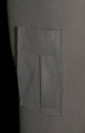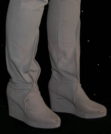 Description: A costume made for Star Trek I: The Motion Picture for wear by Majel Barrett in her portrayal of “Dr. Chapel”. The costume is a gray Class-D Starfleet uniform jumpsuit with shoulder affixed green colored division strips and a green backed Starfleet logo on the left breast. The costume also features a functional pocket on the right thigh and attached shoes. The sewn in Western Costume Co. tag reads ‘Majel Barrett'.