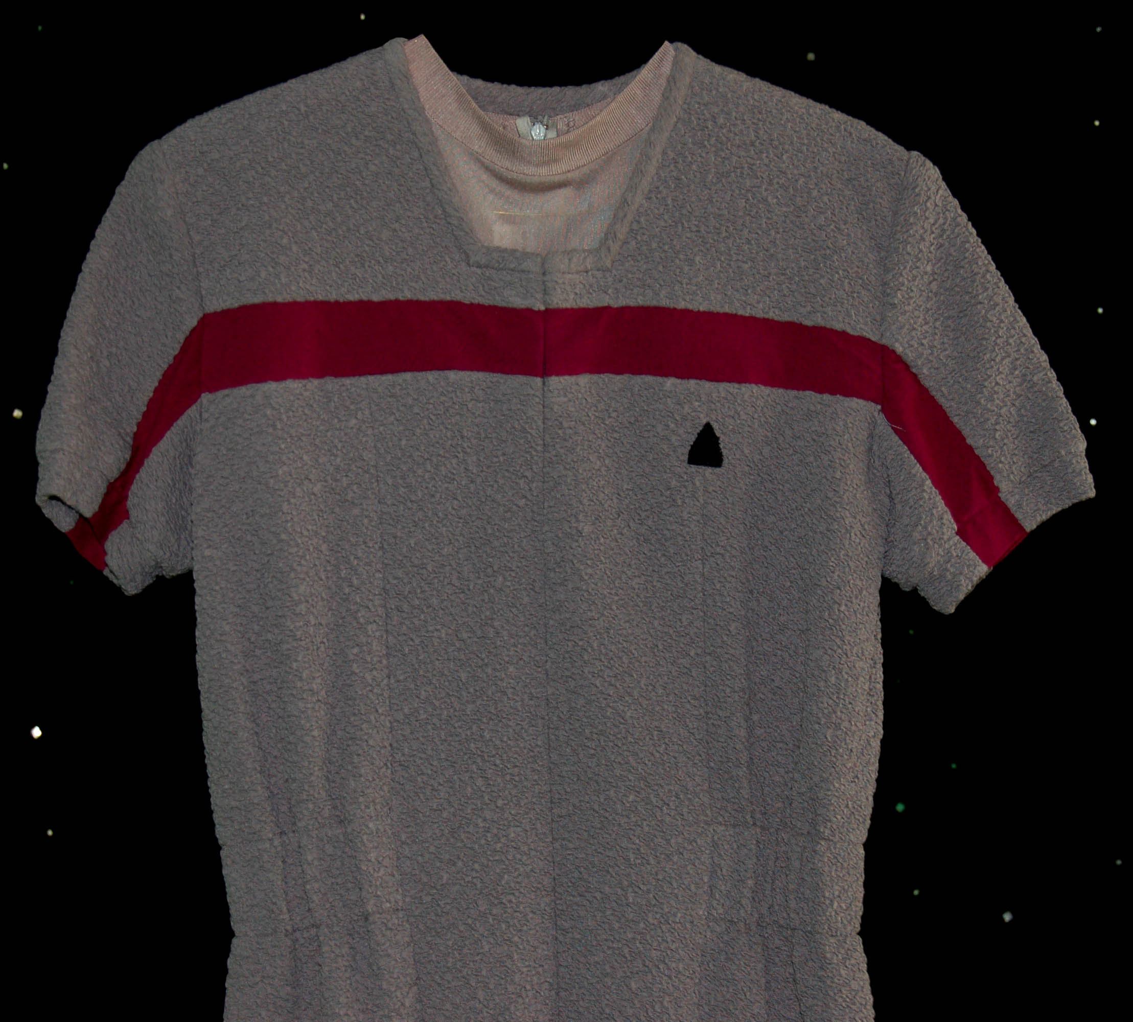 Description: “Q (Junior)” was played by Keegan de Lancie, the real life son of John de Lancie who also played his onscreen father “Q” in the Star Trek: Voyager episode “Q2”. Q (Junior) was sent by his father to stay onboard the U.S.S. Voyager in the hopes that he would learn some of the Starfleet crew's Human virtues and avoid being banished from the Q Continuum. This is his impressive costume collection from the “Q2” episode that includes his Starfleet uniform; a black jumpsuit with command red shoulders, adjustable internal waistband and a zip up the front. There are also loops around the waist and a small Velcro patch for a Combadge to attach (not included) on the left side of the chest. Two gray long sleeved undershirts with zips up the back are also included. The second costume is Q (Junior)’s gray workout jumpsuit with puckered fabric, a command red band around the upper torso, internal adjustable waistband and a zip up the front. A lightweight gray short sleeved top is worn underneath. The workout jumpsuit comes complete with gray running shoes. The sewn in tags read “Voyager – Keegan de Lancie”. The costumes come complete with costume tags.