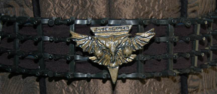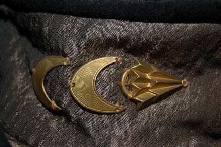 Description: A costume featured in the Star Trek: Deep Space Nine episode “Inter Arma Enim Silent Leges” for wear by veteran Star Trek actor John Fleck as “Minister Koval”. The costume is wood-grain patterned trousers with a matching jacket top with black piping accents and a black Dry-deck belt that features an affixed gold painted resin Romulan Star Empire bird of prey badge serving as a ‘buckle' as the belt fastens in the rear. The collar of the costume also is adorned with brass colored metal crescents and flairs representing Romulan ranks. The costumer’s tag reads ‘#565 DS9 “Inter Arma Enim…”, Koval, John Fleck, Romulan’, another tag indicates ‘change 2’, and the sewn in Deep Space Nine tag reads ‘John Fleck’. Fleck portrayed several alien characters in various Star Trek series, most notably ‘Silik’ the Suliban in Star Trek: Enterprise.