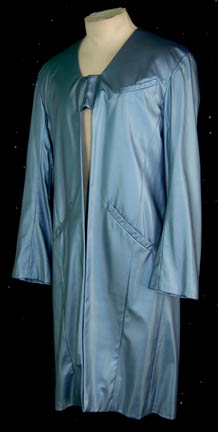 Description: “Dysek” (Star Trek regular - Gregory Itzin) was a Dinaali doctor and Chief of Medicine on the Hospital Ship 4-2. He was featured in the Star Trek: Voyager episode “Critical Care” in which the “Doctor's” (Robert Picardo) program was taken from the U.S.S. Voyager and sent to help out on the Dinaali hospital ship. The long sleeved blue lab coat is made of sky blue vinyl with three pockets and four hook-and-eye clasps on the front. Costume comes complete with costume tag.