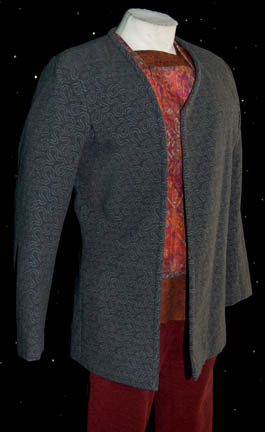 Description: A costume featured in several episodes of Star Trek: Deep Space Nine following the nine part plot arc of the Dominion War and the fall of “Kai Winn Adami” (Lousie Fletcher). The costume is for wear by Mark Alaimo in the role of “Gul Dukat” when he altered his face to appear Bajoran and took the name of a man who died in the occupation; all in an attempt to seduce “Kai Winn Adami” to worship the Pah-wraiths and thusly, destroy the Bajoran people. It is a short-sleeved white undershirt with pads sewn into the shoulders, a rust and black specked long-sleeved shirt, a multicolored vest, maroon trousers with stirrups in the feet, and a long-sleeved grey patterned jacket. Lot includes an extra pair of overall style trousers identical to the others. A sewn in tag reads ‘Deep Space Nine, Mark Alaimo' and the costumer’s tag reads ‘DS9, Gul Ducat, As a Bajoran’.