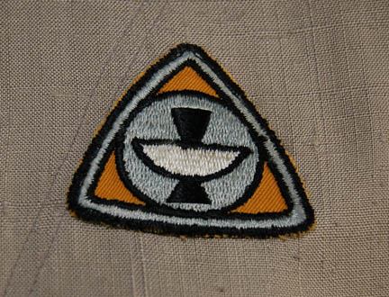 Description: A costume featured in Star Trek I: The Motion Picture for wear by characters on board the ‘Epsilon IX Station'. The costume is a gray colored shirt with an open neck and an affixed yellow backed ‘Epsilon IX’ assignment patch on the left breast.