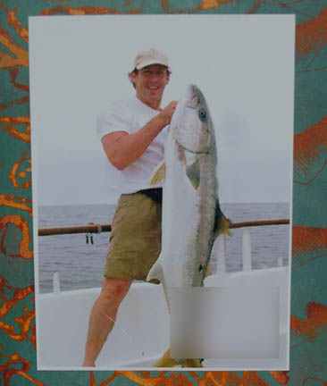 Description: A piece of set dressing featured in various episodes of Star Trek: Enterprise like “These are the Voyages…” in the quarters of “Commander Tucker” (Connor Trinneer). The item is silver colored metal framed artwork with a color copied picture of an unknown Caucasian male holding a large fish adhered to the painting itself. The artwork is held in place by way of foam core and a wire runs across the reverse of the frame. The item measures approx. 22 X 18.5 X .75 inches.