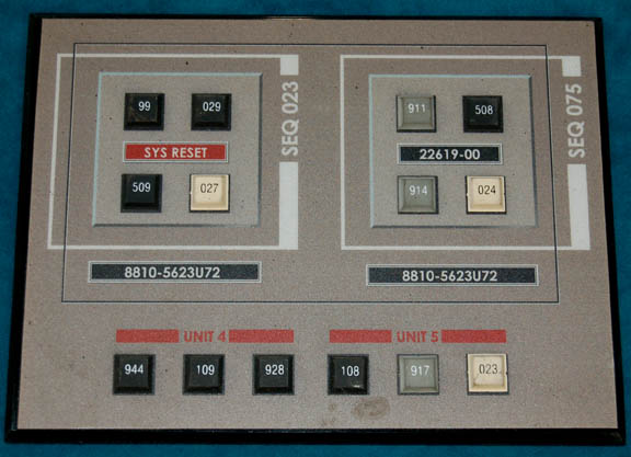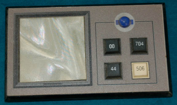Description: A pair of cast resin keyboard type button panels, an acrylic button panel with a graphical application, and an acrylic communication panel with a graphical application and buttons, all painstakingly removed from set pieces which were part of the “Enterprise NX-01”. The items all feature multi-colored faux rubber buttons with numeric values on them. The keyboards measure approx. 13 X 5 inches, the button board measures 8 X 6, and the com board measures 5 X 3 inches.