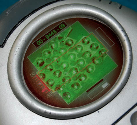 Description: A prop hand scanner made from very sturdy foam rubber in the same style as the one used by “Temporal Agent Daniels” (Matt Winston) in the Star Trek: Enterprise episode “Cold Front”. The item is different, however, in that it is painted metallic silver with gray painted elements and features a green themed graphic on the ‘display screen'. The item is basically ovular in shape and measures approx. 8 X 5.5 X 2 inches.