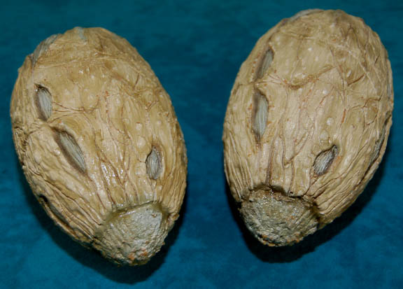 Description: A pair of intact molded rubber prop seed pods featured in the Star Trek: Enterprise episode “Extinction” appearing during scenes involving genetically altered “Captain Archer” (Scott Bakula), “Hoshi Sato” (Linda Park), and “Lieutenant Reed” (Dominic Keating) searching for food native to the quarantined Delphic Expanse planet. The items are nearly identical hand painted molded rubber with presumably pull away lids that measure approx. 6 X 3 inches diameter.