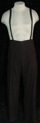 Description: A costume featured in the Star Trek: Voyager episode “Nothing Human”, wherein a non-humanoid creature attaches itself to “B'Elanna Torres” (Roxann Dawson) and “The Doctor” (Robert Picardo) uses a holographic representation of the Federation’s leading exobiologist to assist him. This costume is for wear by David Clennon in the role of the Cardassian exobiologist “Crell Moset”, and is a black, body pad, a long-sleeved, brown jacket featuring intricate, lightly-textured, diamond-shaped patterns along the sleeves, brown iridescent fabric in further diamond-shapes along the ribs and under the sleeves, intricate floral designs along the chest, and even further, textured, black, floral designs. Included are trousers in the design of the textured, black floral pattern on the jacket, and brown trousers with black sewn in over it; both trousers are overall-style and have stirrups for the feet. Pictures alone cannot properly display the craftsmanship and intricacy that went into the creation of this garment; it must be seen to be believed. A sewn in tag reads ‘Deep Space Nine, John Austen’ and the costumer’s tag reads ‘Voyager #200 Nothing Human, Moset, David Clennon’.
