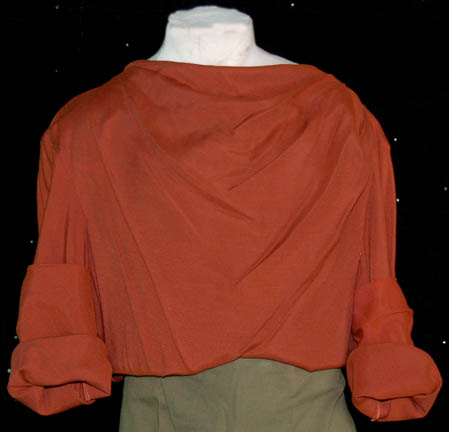 Description: A costume featured in the Star Trek: Enterprise episode “The Seventh” for wear by Bruce Davidson in his portrayal of “Menos” during a flashback in which a younger version of himself witnessed the gunning down of a crime associate by “T'Pol” (Jolene Blalock). The costume is a simple brown shirt and a set of olive colored trousers and features a costumer’s tag reading ‘Enterprise 033 The Seventh, Young Menos’.