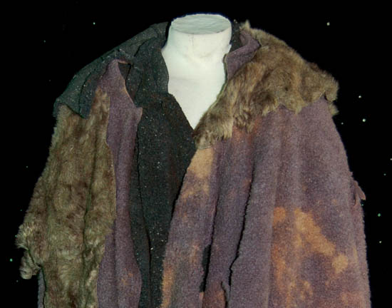 Description: A costume featured in the Star Trek: Enterprise episode “Judgment” for wear by Dominic Keating in his portrayal of “Lieutenant Reed” while he broke into the infamous Klingon prison mine of Rura Penthe to rescue “Captain Archer” (Scott Bakula) from life imprisonment. The costume is a large set of layered fabrics with faux fur, synthetic wool, and real wool or varying colors. Made to appear rugged, the costume is torn and ragged in places with multiple holes and ‘stains'. The sewn in Enterprise tag reads ‘Dominic Keating’ and ‘Marty Murray 045’. The costume also comes with a prop ‘rock pick’ featured in the episode, a plastic pipe filled for added sturdiness with a rubber ‘blade’ molded around an interior metal frame work featuring leather wrapped lacing around the ‘blade’, all painted metallic silver and measuring approx. 30 X 16 inches.