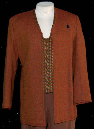 Description: “Tom Paris” (Robert McNeill) was a Flight Controller onboard the U.S.S. Voyager throughout the Star Trek: Voyager series. This civilian costume was made for wear by Paris during the show. It includes a multicolored herringbone vest, brown linen trousers and rust wool coat. The coat has a small Velcro patch on the left breast for a Combadge (not included) to attach. Costume comes complete with costume tag.