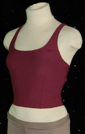 Description: A costume featured in the Star Trek: Enterprise episode “Vanishing Point”, wherein a series of strange occurrences, following her first experience with the transporter, starts to convince “Ensign Sato” that she is becoming invisible. This costume is for wear by Linda Park in the role of the Communications Officer of the “Enterprise NX-01”,”Ensign Hoshi Sato”, and is a burgundy-colored, sleeveless exercise top with spaghetti straps, grayish-brown sweatpants, stirrups for the feet, and white tennis shoes with olive green, plastic accents, and a Velcro cover for the laces. A sewn in tag on both reads ‘Enterprise, Linda Park, #036'. Items were found separately but matched with episode numbers and screen caps.
