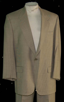 Description: A suit and camel coat made for wear by “Captain Sisko” (Avery Brooks) in the Star Trek: Deep Space Nine episode “Far from the Stars” in which Sisko experienced a vision from the Prophets that made him see himself as Benny Russell; a 1950s sci-fi writer. The pure wool suit includes a brown jacket with a single button faster, two faux pockets on each side and a real pocket on the left breast. It comes with corresponding trousers. The sewn in tags read “Deep Space Nine – Avery”. Secondary sewn in tags indicate the suit was also reused during the Star Trek: Enterprise series. The camel coat is full length with brown buttons. Coat comes complete with costume tag that lists the episode by its working title “Cold and Distant Stars”.