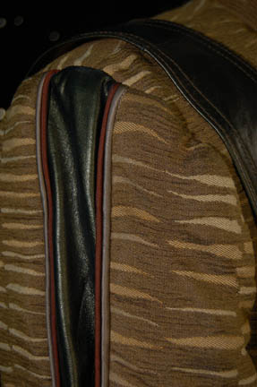 Description: A costume featured in the Star Trek: Enterprise episode “Proving Ground”, wherein “Commander Shran” (Jeffrey Combs) appears in an Andorian starship to assist in the “Enterprise NX-01” in finding the Xindi super weapon. This costume is a textured, vertical tiger-striped, brown and gold jacket with brown piping, beige and reflective, green-vinyl trim, brown satin lining, a green vinyl harness that wraps around the shoulders and waist culminating in a metal buckle. The overall-style trousers and robe are also tiger striped brown and gold. A sewn in tag denotes wear by multiple actors and the costumer's tag reads ‘Enterprise #065 Proving Grounds, Xindi-Humanoid’ Xindi-Primates were referred to as “Xindi-Humanoids” during the early part of the third season.