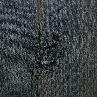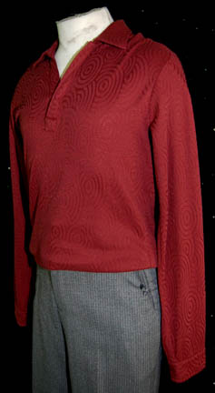 Description: A costume featured in the Star Trek: Enterprise episode “Borderland”, wherein the “Enterprise NX-01” needs the help of a convicted criminal, “Arik Soong” (Brent Spiner) to prevent a war with the Klingons being precipitated by augmented humans left over from the Eugenics Wars. This costume is for wear by Anthony Montgomery in the role of helmsman of the “Enterprise NX-01”, “Ensign Travis Mayweather”, and is a maroon, long-sleeved, shirt featuring a textured, spiral pattern, buttons on the cuffs and around the collar, gray slacks with vertical stripes and moderate distress on one of the knees. A sewn in tag reads ‘Enterprise, Anthony Montgomery #80'.