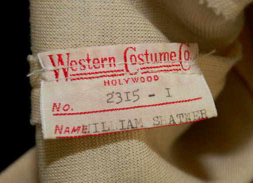 Description: Another out of the ordinary costume element from Star Trek I: The Motion Picture. The item is a short sleeved Class-B Starfleet uniform top, cream colored, with an attached plastic bio-monitor, threads remaining from an unattached emblem patch for the left breast (not included), and a pair of attached command white division-rank strips on the shoulders. The strips indicate the wearer to be an as yet undetermined rank (conjecture has posited that it may be ‘crewman 2nd class) but depict a single solid gold thread bar. The sewn in Western Costume Co. tag reads ‘3215-I William Shatner' and gives a chest measurement, though it should be noted that at no time during Star Trek I: The Motion Picture do we see Shatner portraying any version of “Kirk” as anything other than a ‘rear-admiral’ or a ‘captain’.