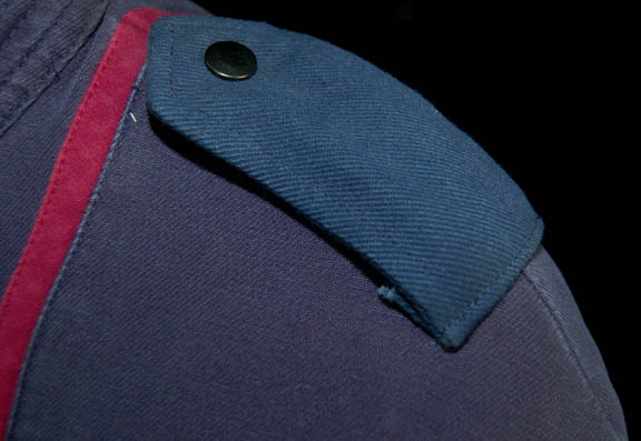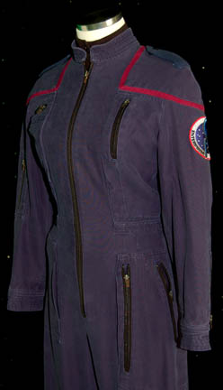Description: A female fourth season Starfleet uniform jumpsuit including the famous ‘Enterprise NX-01' left shoulder patch with engineering red trim around the shoulders. The jumpsuit also features permanently attached epaulettes on each shoulder. “Enterprise” costumes feature multiple zippered pockets, Velcro size adjustments and zips at the wrists and ankles. To accompany the jumpsuit is a black long sleeved cotton top with buttons up the front. Costume comes complete with costume tag.