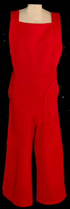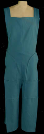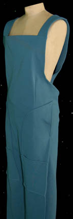 Description: A lot of three coveralls made for the never seen Star Trek Phase II series. The costumes are command gold, engineering red, and sciences blue, sleeveless with unique wraparound legs, and open topped pockets.