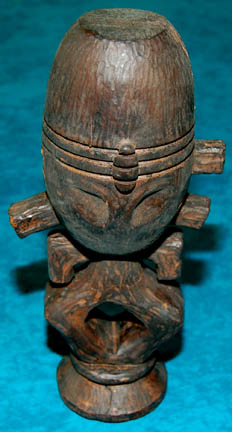 Description: A “Horga'hn” is a statuette that symbolizes fertility on the pleasure planet Risa and indicates that a person carrying it is looking for “Jamahoron”, a pleasurable sexual practice native to the planet. Featured in the Star Trek: Deep Space Nine episode “Let He Who is Without Sin…”, this Horga’hn is made of Styrofoam (Polystyrene) painted brown to resemble wood. Due to time, use and storage one of the pegs is missing off of the top right side of the head. Measures approx. 11 ½ x 5 ½ x 4 inches.