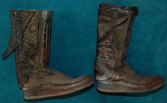 Description: A costume featured in Star Trek: Voyager second season finale episode “Basics: Part I”; wherein “Voyager” is taken by the Kazon-Nistrim in a sneak attack, the crew is left on a primitive planet to die, and “Tom Paris” (Robert Duncan McNiell) is believed dead. This costume is for wear by John Gegenhuber in the role of the Kazon that sabotages and cripples “Voyager” with a suicide bomb, “Tierna”, and is a sleeveless, multi-colored, vertically striped, tunic, a long-sleeved, teal, shirt featuring vertical stripes radiating from the collar and along the cuffs, what seem like magenta plaid trousers, and a purple, fur-lined vest, a rubber sash with metal and leather accents; brown leather, tall boots with metal plates along the front, and a wig of the Kazon style. A sewn in tag reads ‘Voyager, John Gegenhuber' and the costumer’s tag reads ‘Voyager 142 Basics, Tierna, John Gegenhuber’.