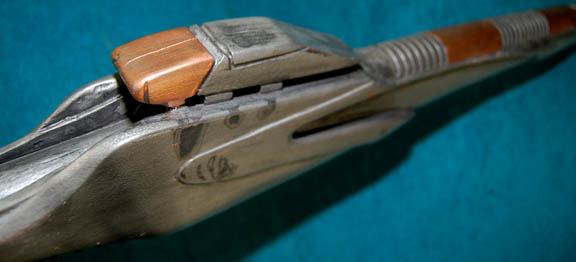 Description: A prop weapon featured in the Star Trek: Enterprise two-part episode “Storm Front: Part I and II; wherein “Captain Archer” (Scott Bakula) and the crew of the “Enterprise-NX-01” find themselves in the era of World War II but with events massively changed by the Temporal Cold War. This item is roughly the shape of a more conventional rifle, made of molded rubber, has copper-colored accents along the top and textured grooves along the barrel. The item measures approx. 29.5 X 2 X 6 inches.