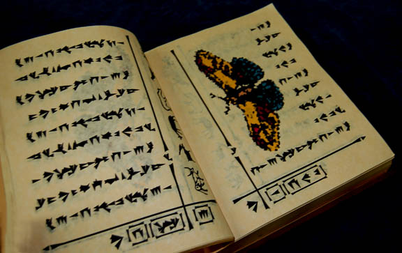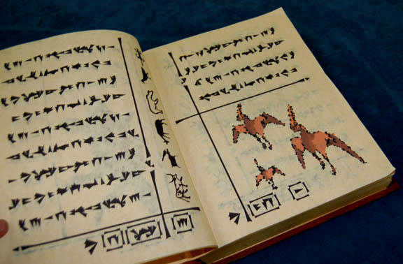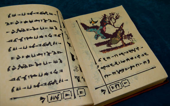 Description: This is a leather and hammered copper bound book made for use on the Star Trek Movie "Insurrection". Inside are specially created printed pages depicting different life forms including plants, animal and script. There are 18 double sided pages of text and images, some of which repeat, and the rest are blank. Measures approx. 10 x 11 ½ x 2 ¼ inches.