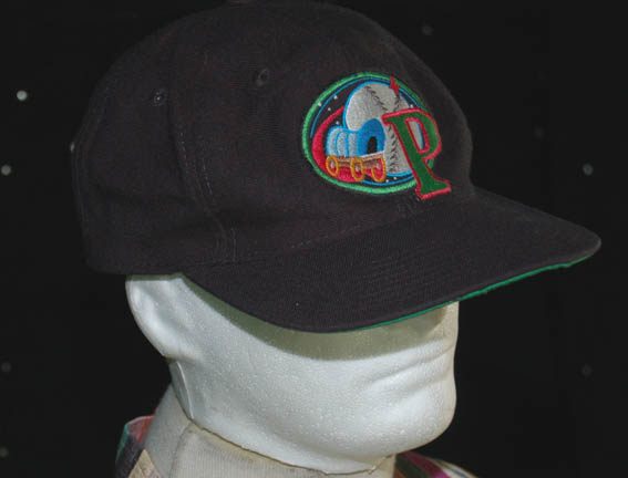 Description: A costume featured in the Star Trek: Deep Space Nine episode “The Way of the Warrior” for wear by Avery Brooks in his portrayal of “Captain Sisko”, and it appears later in the episode “Starship Down”. The costume is a multi-colored striped silk shirt with an asymmetrical front, folded down at the neck, with a black baseball cap, a gift given to Sisko by “Kasidy Yates” (Penny Johnson). The shirt features a sewn in Deep Space Nine tag reading ‘Avery Brooks' and the ball cap features a sewn on patch depicting the logo of the “Pike City Pioneers”, a pioneer wagon racing around a large baseball floating in space with a large green ‘P’, and evidence of make-up still remains inside the rim. The costumer’s tag reads ‘473 DS9 “Way of the Warrior” Sisko, Avery Brooks’ and indicates the components. Another costumer’s tag reads ‘#473 Pike City Pioneer Ball Caps, DS9 “Way of the Warrior” Gift from Kasidy to Sisko’, though only one cap is present.